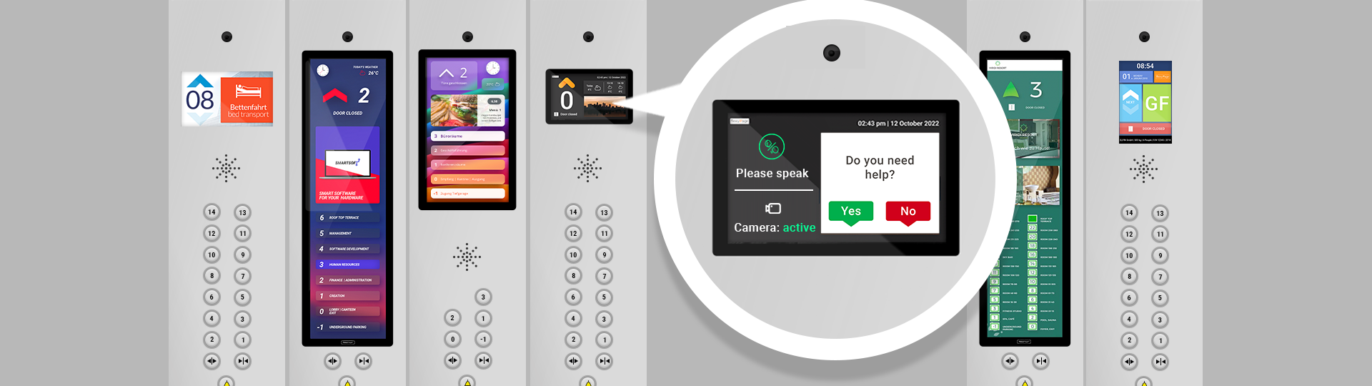 Through the connections for the components in the cabin panel, the flexyPage displays are particularly suitable as smart COP displays. In many cases, the call buttons and door buttons can be directly connected to the smart displays. Get to know the functional capabilities of our smart COP displays.
