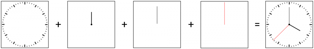 - Wählt man beispielsweise ein Zifferblatt und drei weitere Bilder für die einzelnen Zeiger, sieht das Ergebnis folgendermaßen aus:
